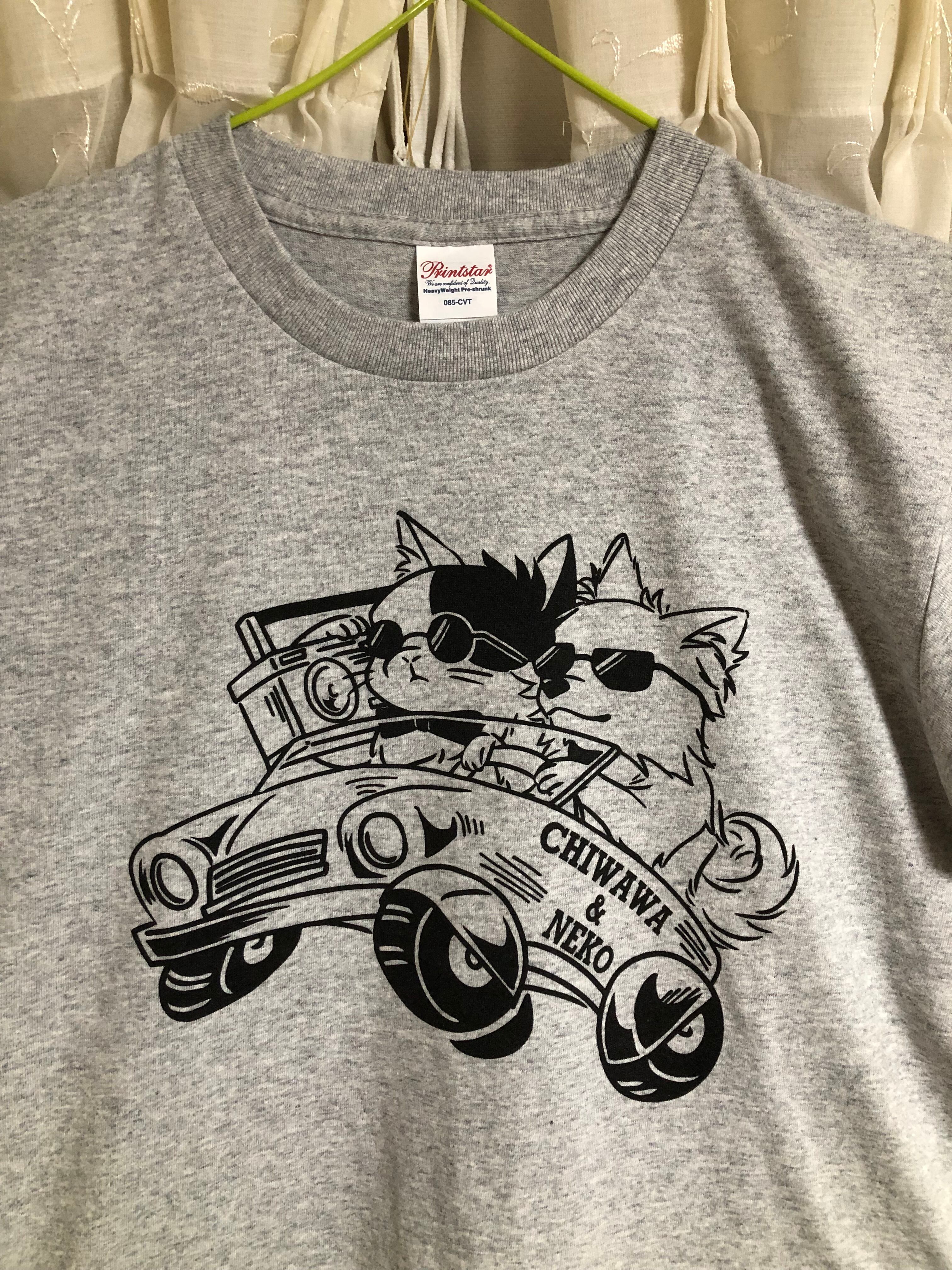 にゃいるどはーとチャリティーTシャツ グレー(イラスト前後反転) S〜XL